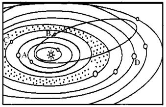 1、综合题  2006年8月24日国际天文学联合会部分通过新的行星定义,将地位备受争议的冥王星“开除”出太阳系行星行列,太阳系行星数目由九颗降为八颗。读原“太阳系模式”图,回答下列问题。(11分)