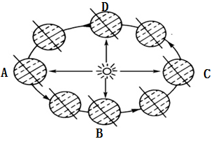 小题3:“嫦娥三号”卫星在月球表面虹湾以东地区着陆时,地球大致位于下图公转轨道中的?