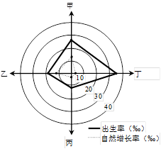 4、单选题 读“某国甲乙丙丁四个时期人口增长模式示意图”。