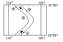 2.本题考查外力作用与地貌。河中有砂金只能存在与泥沙堆积处,根据河流流向及经纬网提示,图示地区在北半球,在地转偏向力作用下①③以侵蚀作用为主,②处有大量泥沙堆积。故答案为D。