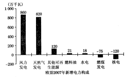 4、多选题 读图,关于欧盟2007年新增电力,下列叙述正确的是