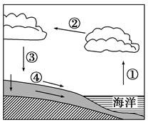 小题1:图示水循环的环节应为:①表示海洋水汽蒸发;②表示水汽输送;③表示大气降水;④表示地表径流。故选D项。