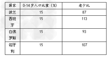 /100。表1是2009年四个国家人口统计数据,其中人口老龄化程度最高的国家是