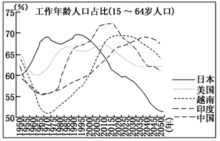 2、单选题 人口红利期,一国工作年龄人口占比高,储蓄意愿高,因此劳动力成本和资金成本(利率)低廉,推动经济增长和资产价格上涨;而当人口结构进入拐点,工作年龄人口占比萎缩,储蓄率降低,劳动力成本和资金成本迅速上升,经济增速和资产价格均面临下调压力。结合下图回答1—3题。