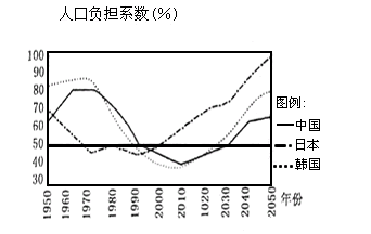 5、单选题 读中国、日本、韩国人口负担系数百年比较图[注:人口负担系数=(14岁及以下人口数+65岁及以上人口数)/(15~64岁人口数)×l00%],国际上把人口负担系数≤50%时称为“人口机会窗口”期。回答1~2题。