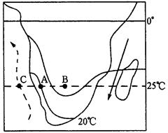 ①纬度?②洋流?③海陆位置?④地形2.如果图中等温线改为向北凸出,等温线最北点距大陆最南端距离最长的时间是3.图中C地渔业资源丰富的主要原因是