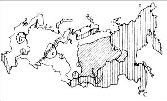 1.俄罗斯的著名河流中不会出现凌汛现象的是2.图中字母表示的工业区中,工业最发达的为