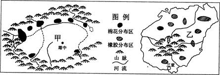 1.甲、乙两区域分别盛产棉花和天然橡胶,其共同的区位优势是
