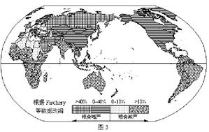 1、单选题 全球变暖是当今世界面临的重大环境问题之一。阅读“全球温度上升3℃后,世界不同区域靠雨水生长粮食产量的增 减状况”示意图,回答问题。
