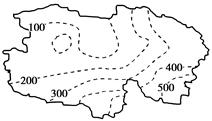 根据图示省区轮廓可知应为青海省;图中等值线总体由东南向西北递减,应为年降水量