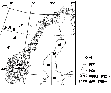 5、单选题 图示意挪威位置和地形。挪威是世界上水能资源开发较充分的国家。该国大型水电站多为高水头(电站水库水位与发电机组所在位置高差大)电站。据此完成题。