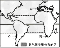 1、单选题 读世界某气候类型在世界局部地区分布示意图,回答1-2 题。