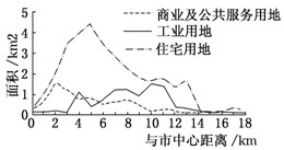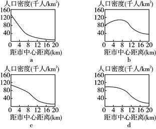 3、单选题 读“某城市不同时期人口密度与距市中心距离关系图”,完成18、19题。
