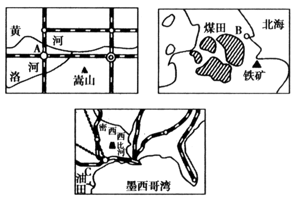 3、单选题 图7分别为A、B、C三个城市示意图。读图回答26—29题。