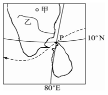 4、单选题 如图,中国某一远洋运输船舶沿着图中箭头航行,在阳光初露海面时刚好通过P地,此时收音机里正在播报北京时间8:00整。据此完成问题。