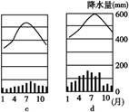 小题2:东京受海洋性的亚热带季风气候影响,故最低月温在0°C以上,降水集中于夏季,故D图符合。
