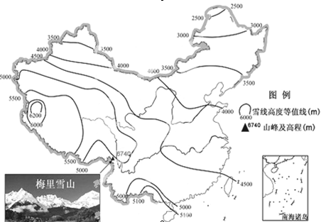 1.模拟的我国雪线高度分布的基本趋势是2.梅里雪山位于横断山区,雪线高度4000米左右。该山雪线相对较低的主要原因是