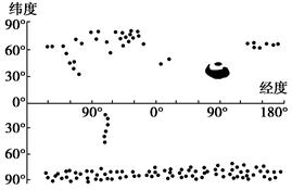 3、单选题 下图中黑点表示某资源的主要分布区。读图回答小题。