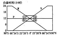1.能表示夏至日全球各纬度白昼时数分布状况的是2.在图中①②③④四点构成的方框图内,表示了___热量带全年白昼时数的分布状况