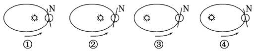 地球绕太阳公转过程中,在近日点时,北半球是冬季,地轴北极远离太阳,在远日点时,北半球是夏季,地轴北极靠近太阳。读图,①地球在近日点附近,但是北极却靠近太阳,①错。②地球在近日点,北极远离太阳,北半球是夏季,②对。③地球在远日点,北极远离太阳,③错。④地球在远日点,北极靠近太阳,北半球是夏季,④对。所以选项D对。A、B、C错。