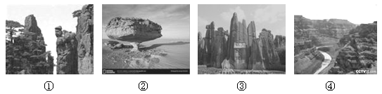 1.图示①表示黄山的“奇峰怪石”,为花岗岩地貌,故A错误;②表示干旱地区的风蚀蘑菇,故为风力侵蚀地貌,B错误;③为路南石林,为流水溶蚀地貌,C错误。图示④为河谷,其形成的内力作用为断层,而外力作用为流水侵蚀,故选D项。