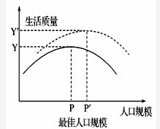 点评:本题难度较小,学生结合图示及课本所学知识即可作答。解答此题需明确:在环境人口容量的基础上,考虑人民的生活消费水平和社会福利的最大化(即获得最大经济效益),以及社会经济的可持续发展和资源的可持续利用时所容纳的人口数量。