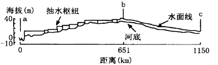 1、综合题 读“我国南水北调工程某输水干线纵断面示意图”,回答下列问题:(6分)
