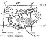 1、综合题 (20分)如图为世界某一区域简图,MN表示晨线,与300E经线所成的角为200,读图回答下列问题。
