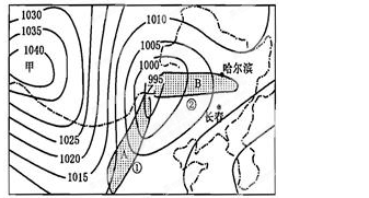 (1)直接根据图示的等压线值分析,甲处中心气压高,判断为高压中心;乙处中心气压值较低,判断为低压中心。按气流运动状况,高压为反气旋,低压为气旋。图乙为低压中心,故垂直方向上盛行上升气流,而高压中心盛行下沉气流。