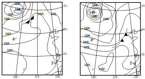 3、单选题 雾霾指空气中悬浮大量微小水滴和颗粒污染物。左图和右图分别是中央气象台公布的“某区域2013年12月7日14时和8日8时近地面等压线(百帕)图”。完成下列小题。