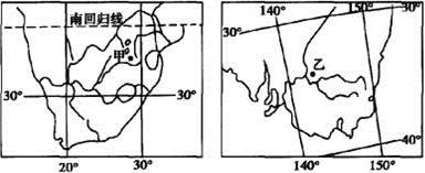 A.甲地位于南温带? B.乙地位于西半球?