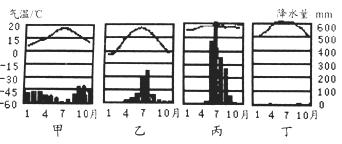 (1)四幅图中,全年降水稀少的是   ,冬季降水少,夏季降水多的是