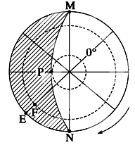 (2)MPN为晨昏线,其中MP是________线。太阳直射点的坐标为____      __。