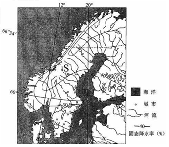 (1)说明S半岛固态降水率的分布特点(至少说出两点)及其主要原因。(4分)