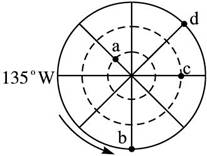 (3)b点的人影朝________________方向,a点的昼长为_______________小时,d点的正午太阳高度是_______________,d点的日出时间是时_______________。