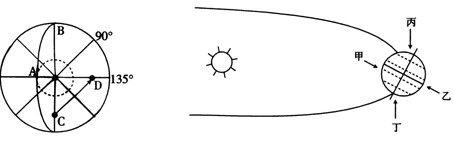 1、单选题 若左图所示地球为逆时针方向转动,且极圈内均为黑夜。据此回答问题: