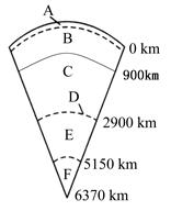 (1)根据图中距地表的距离可知,图中A为地壳,C为地幔,E为外核,F为内核。