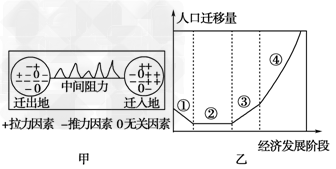 1、图甲表示人口迁移的拉力和推力示意图,下列表示推力因素的是