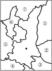 (2)将其相邻的省级行政区的简称,按代号填写在相应的空格内: