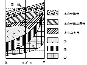 小题1:通过观察垂直带谱的分布,东坡、南坡的带谱比北坡、西坡复杂,是因为山麓地面高度不同,表述正确,因为东南坡山麓海拔低,而西北坡山麓海拔高;西坡的高山灌丛草甸带比东坡的高而窄,是因为西坡比较湿润,表述错误,因为根据雪线,判读,东北坡为迎风坡;北坡积雪冰川带的下限比南坡低是坡向造成的,表述正确;所以本题选择AC选项。