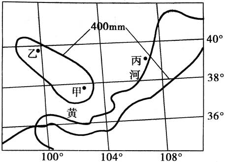 小题1:根据图中经纬度可知,图中甲、乙两地位于我国的河西走廊,两地降水量>400mm,水汽主要来自太平洋;