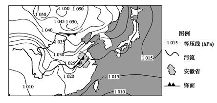 2、单选题 安徽省某中学气象兴趣小组,根据亚欧大陆局部地区等压线分布形势图,探究该省秋末冬初天气变化状况。据此完成小题。