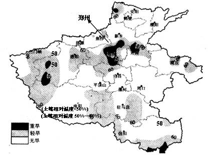 材料二?下图为河南省2010年12月11日实测土壤相对温度分布图(单位:%)。