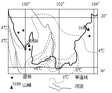 1.图中4℃等温线向北突出,主要是2.与图中几处湿地的形成无关的是
