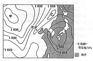【小题2】读图可知,北京位于低压槽内,易形成冷锋,此处等压线密集,风力较大,冷锋势力强,那么暖空气水汽含量大,在快速抬升的过程中,水汽凝结,形成暴雪。故选D。