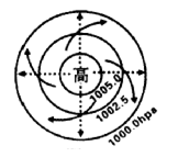 1、单选题 读“以北极点为中心的气压带、风带分布模式图”,回答下列各题。