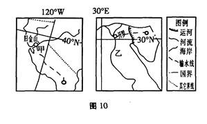 2、单选题  图10为“甲、乙两河跨流域调水路线示意图”。读图完成下题。