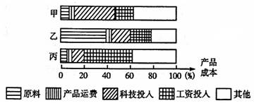 小题3:丁省为青海省,位于青藏高原,而丙省为山东省,两者相比,丁省人口稀少,交通不便,经济落后,城市化水平较低,第三产业比重小,第一产业比重较大。