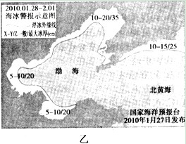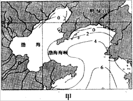 渤海二月表层海水温度分布图(图甲)。