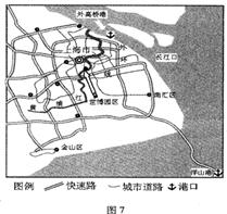 (1)结合资料一和图7,分析世博园区的优势区位条件。(3分)